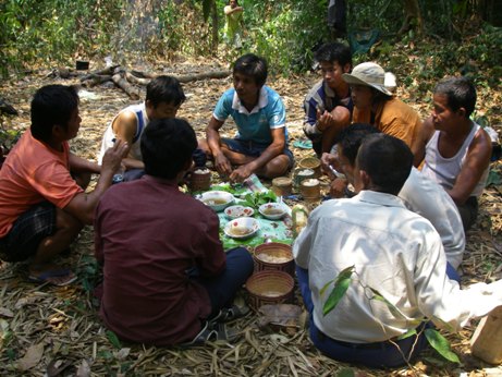 ラオス人は、食事をしているときに人が来たりすると、必ず「ご飯食べていきなよ」と誘う。昼間は庭先などで食べている人も多いので、知り合いが通りかかる可能性は大。たいていは「どうぞ美味しく食べて」と答えるもので、「じゃあ」と加わることはあまりなく、実質社交辞令。そういった意味では日本でもそのようなやり取りは確かにある。しかしラオス人はこれが徹底している。