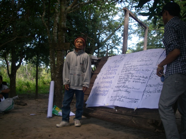 熱心なのはいいのだが、今年初めて実践した村人に次々に質問。たまりかねた(?)ある村人から「おーい、初めてやったばかりのやつになんだってそんなに聞くんだ!?」とヤジ。みながどっと笑う。「そりゃそうだ」の声が挙がり、スタッフの助け舟。こういうムードになるのは願ってもいないこと。来年の実践者増加に期待です。