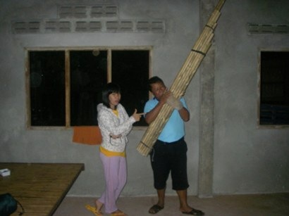 ケーンはラオスとイサーン地方の伝統楽器。サワナケートの街の入り口にあるラウンドアボウト(ロータリー)にはサワナケートを象徴する3つのもののモニュメントがあるが、そがれらは金、恐竜、そしてこのケーンだ。