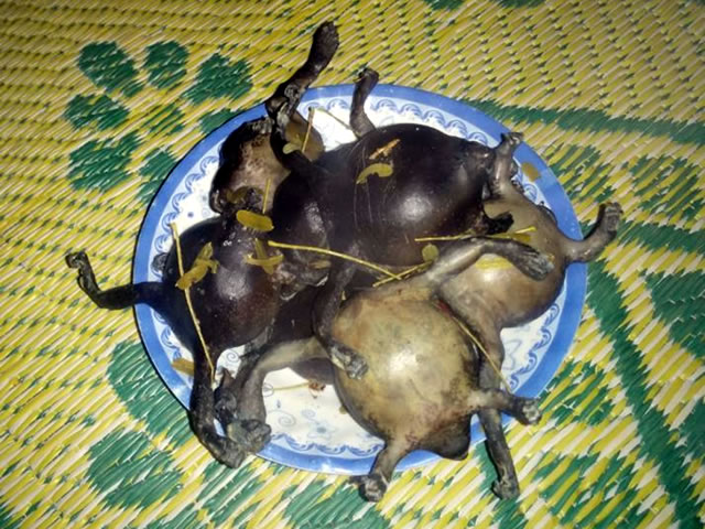 ラオス語には"カエル"に当たる言葉が三種類あり、「ウーン」というカエルは雨季始まりの雨上がりにしか採れません。このため、雨の降った後の晩は皆カエル採りに出かけていきます。SRIのビデオ上映を夜に開催した際、その日にちょうど雨が降ったため多くの村人がカエル採りに出かけてしまい参加者が少なかった事がありました。