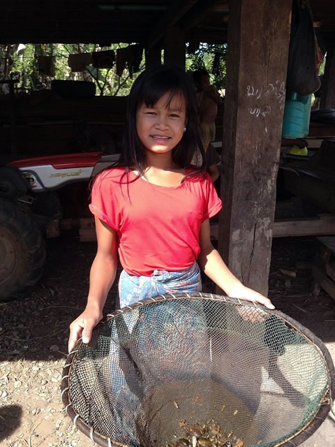 こちらも魚よりタニシや貝、カニが目立ちますね。最初に「魚を獲る道具」と紹介しましたが、「魚やカニや水棲昆虫を獲ったり、貝やタニシを採ったりする道具」というのがより適切な表現でしょう。これはラオスの農村のあらゆるところで言えることかもしれません。そもそも、キャベツ農家、とかマグロ漁師、とかそういった何かに特化した人たちはごく一部です。村人の多くが米や野菜を作り、家畜を育て、森や川で自然資源を採取し、漁や猟をして日々の暮らしを立てています。