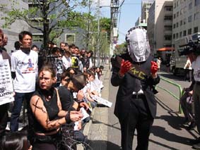昨日3日はウーマン・イン・ブラック、今日4月4日はピースボートと連日のようにイスラエル大使館前での抗議のデモが始まった。みんな口を黒い布でふさいでの抗議「パレスチナ人は声が出せない!」