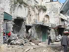 旧市街の中でも最も古い地区は完全に破壊されていました。大地震の跡のようです。まだ、行方不明になっている人もいます。男達が瓦礫を掘り返し、行方不明になっている人を探していました。