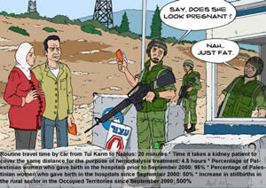 このパンフレットは6枚のイラストからなる。西岸ガザでのイスラエル軍の人権侵害だけでなく、イスラエル国内での問題も含まれている。イラストの下には、死産率の増加や、救急車への攻撃回数などのデータが具体的に記されている。
