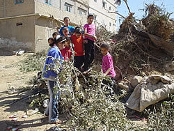 昨日(24日)、家の一部と庭が完全に破壊された。子どもたちがオリーブの木に集まっていた:ブラジル地区