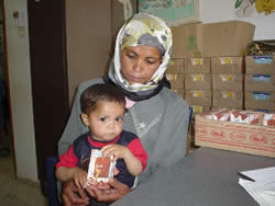 今回のラファでの緊急事態を受けて、JVCはANERA(American Near East Refugee Aid)とイスラミック・リリーフ(本部はイギリス)と共同で、栄養失調や貧血症等のため特に栄養を必要とする子どもたちに、牛乳(西岸のナブルスで生産されている長期保存可能なもので1箱250ml)と高栄養ビスケットを支援しました。