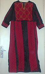 このドレスの赤い部分は全て細かい刺繍になります。黒地に赤い糸での刺繍は伝統的に多い組み合わせです。