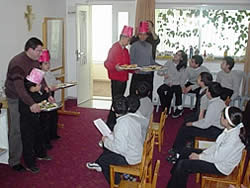 ギターを練習する子どもたち金曜日の活動の中でも、音楽は取り入れられていてギターのクラスがあります。これは音楽療法の一環でもあります。校長先生のシスター・ローズとギターが弾け音楽を専門に習ったことのあるスタッフが担当です。主に、簡単なコードを練習してそれに曲に合わせていきます。
