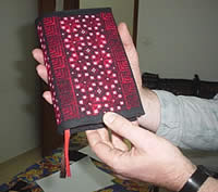 これは、昨年の12月に女性グループも参加させてもらったクリスマス・バザールのあったエルサレムの教会の関係者からの注文でした。急な依頼があったそうで、ドイツの教会で使う祈祷書用のカバー20枚を5日間でできないかということで相談を受け、引き受けることにしました。