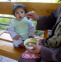 「人間の大地」ガザセンターでは、子どもの栄養を専門に治療と教育を多方面から取り組んでいます。現在の社会・経済状況の悪化に対して、栄養失調児に二食の栄養食を提供、同時に専門家が母親への栄養教育をしています。栄養食は6ヶ月以上の子どもが対象です。ほとんどの母親はセンターに来る交通費が払えないので交通費の補助もしています。