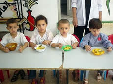 「人間の大地」のガザセンターには、約30人の栄養失調児が栄養食のために集まってきていました。集まって来る人数は日々状況が違います。先週からはセンターに来なくなった人たちが出ています。センターに来ている子どもたちの体重は必ずしも増えてきていないようです。週に3回、2食の栄養食だけでは、十分ではありません。栄養失調が悪化しないことを何とか願うばかりです。