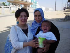 イスラエル軍は中部のマガシ難民キャンプから撤退、南部のハンユニスも落ち着いているということで、自宅まで特殊ミルク2缶を届けました。