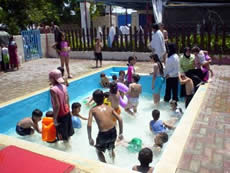 1回は、サマー・プログラムに参加している子どもたち対象、もう1回は子どもの家族も含めて、参加を希望したい人には、オープンにしました。「プールに行く」余裕のない家庭や子どもの人数が多くて費用がかかりなかなか連れて行ってもらえない年少の子ども、障害を持った子どもも、参加しました。