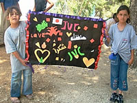 風に吹かれて揺れるたくさんの絵の中には、JVCへのメッセージもありました。