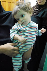 ゴミのコンテナから物を拾う子どもは、ガザ市内でも見かけるこの日は初めてセンターに来た3人を含む34人の子どもたちが来ていました。そのうち、重度の栄養失調として治療を受けているのは3人。現在治療を受けている重度の栄養失調児は10人だそうです。