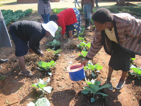 学校での研修の後は、家庭菜園を訪問しました。LMCCのいいところは、ボランティアたちを引っ張って行くスタッフたちが自分で実践をしてお手本になっているところです。今回訪問したダイレクターのリリアン、DIC担当のジョージやアナは10分ほどでこぼこ道を歩かないと水が入手できないようなところで皆緑いっぱいの畑を作っていました。こういう人たちといると「次はこういうことが一緒にできるかな」とアイディアもいろいろと沸いてきて、活動していてとても楽しいものです。