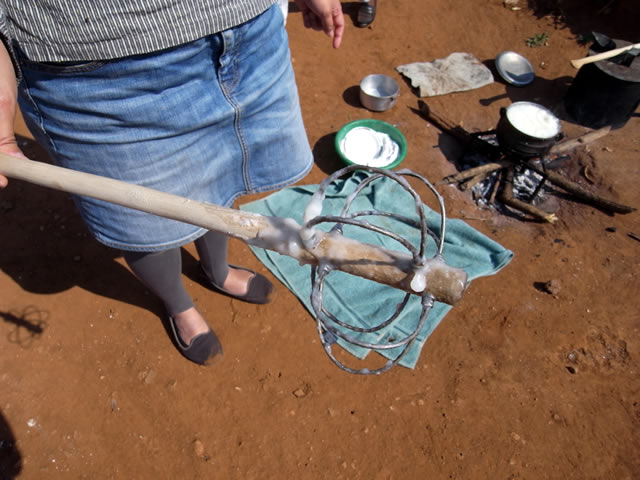 でも、この村で発見した、パップ専用泡立て器!頑丈なワイヤーでできていて、とっても使いやすい。買って帰って、ジョバーグで売ったら、一儲けできるかな!? さすが村の知恵による手作り品はよくできてます。