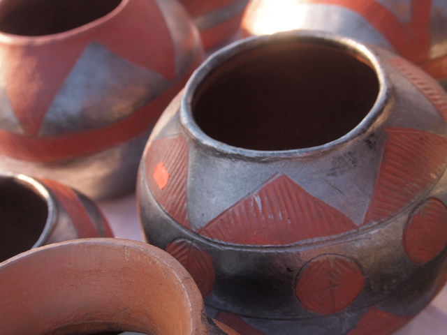 週末に、事務所のあるマカドから北部に足を延ばし、ハイキングに行った帰り道、道端で陶芸品を売っているのを発見!素焼きでシンプルながらも、伝統的な模様がとても素敵で一目ぼれ。売っていた若い女性に聞くと、80歳を超える彼女のおばあさんが一つ一つ、庭の土窯で手作りしているそうです。