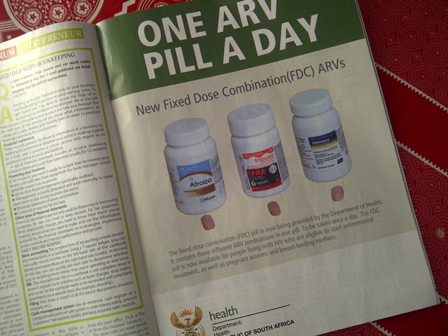 前回記事に書いた、1錠ですむARV(エイズ治療薬)が、4月1日から南アフリカの公的医療施設でも解禁になりました。