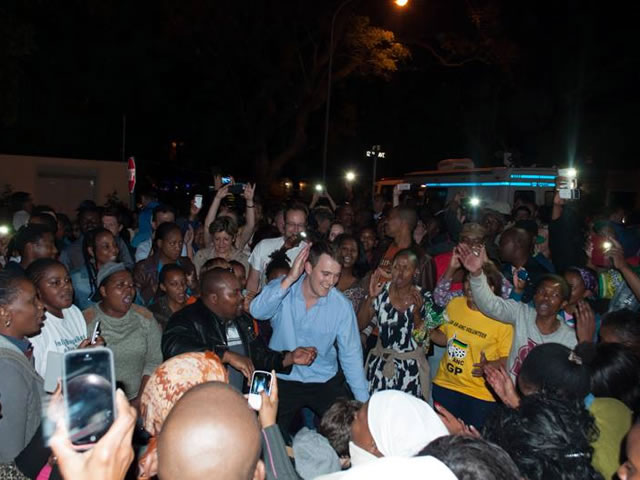 マンデラ氏のジョハネスバーグの自宅前は、死去の発表直後から多くの人が集い、夜中にも関わらず、数百人の一般人、報道陣が集まり、キャンドルを灯すもの、国家を歌うもの、踊り歌うもの、真夜中であるにも関わらず、白人、黒人問わず多くの人であふれていました。