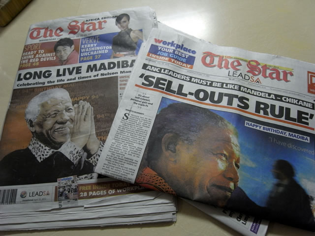 先週7月18日は、ネルソン・マンデラの94歳の誕生日でした。さすがに、「南アフリカの父」のお誕生日。数日前から、TV、新聞、ラジオ...どこもマンデラ一色。さらに、数年前からこの日は、『ネルソン・マンデラ・デー』として国際的にも祝われるようになっています。マンデラ氏が南アフリカの民主化のために闘った67年間を祝って、この日に67分間のボランティア活動を行うことが、南アフリカ国内でも、国際的にも奨励されています。