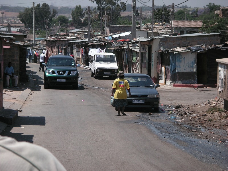 アパルトヘイト時代に生産・生活基盤を破壊された南アフリカの黒人社会では、現在でも農村部から都市部への人口流入が続いています。しかし、黒人社会の失業率は60%にも上り、人びとは都市化に適応できているわけではありません。人びとは現金しか生活手段を持たない中で、援助動向や世界的な景気など外部環境にさらされ、翻弄されることも多く、農村よりも生活が不安定な側面もあります。