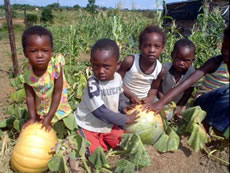 | ■遺児のデンゼルの畑では大きな かぼちゃが収穫できた |