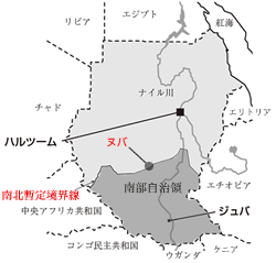 南北境界付近に位置する青ナイル、ヌバ山地、アビエイの三地域は、歴史的に北部に属するものの、内戦中は南部の反政府軍(SPLA)がこの地域の一部を実効支配していた。そのため、2005年の内戦終結時に締結された「包括和平協定」では、この三地域は暫定地域と規定され、2011年の南部独立投票時に、それぞれの地域において南・北どちらに帰属するかの住民投票が行われることになっている。