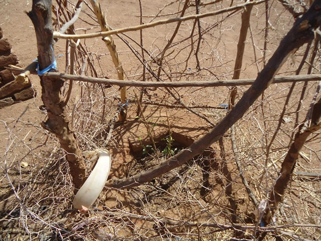 この地方では、人々は往々にして家から離れた場所に広い畑を持っています。歩いて行ける場合もあれば、ある時には10キロも離れていて、農繁期には男たちは畑の小屋に泊まり込んで作業を行います。そこでは、主食穀物のソルガムを中心に、ゴマ、落花生などが栽培されます。一方、家の周りには必ず小さな畑があり、この地方で「ジブラカ」と呼ばれています。こちらは女性の担当です。