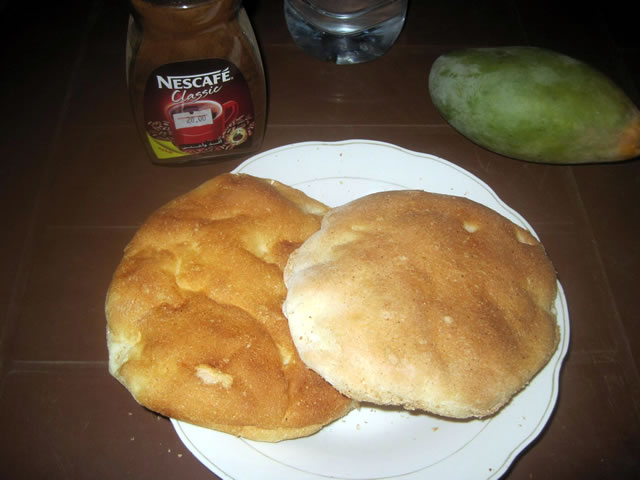 ハルツームの食卓に欠かせないパン。ホブスと呼ばれる丸型のパンですが、この値段だけは変わっていません。4個で1スーダンポンド(15円)。
