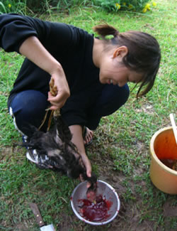 二人とも料理の腕が着々とあがっています! 限られたもので、それも慣れない食材でタイ人相手に食事を作るのは簡単なことではありません。特訓(?)のかいがあり、今では二人とも魚をさばくのはもちろんのこと、鶏をさばくこともできるようになってきました。次の宮田さんの課題は、手の拳ほどある食用ガエルを手でつかめるようになることかな〜 イサーンに住むのに「きゃ〜ぁ!」なんて言っている場合ではありません!!