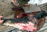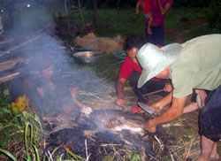 豚肉も血とあえて生で食べたりします。最初からレバーや腸など、内臓も一緒にBBQにします。もちろん炭火です。その上重労働の後とあっては、世の中にこれ以上のものはあるのかと思うほどのおいしさです。自分が育てた豚に対する愛情と感謝。肉体労働の後の空腹間。グルメと名乗る人たちが世界中のおしいものを探して食べるのとは、おいしさの感動が違います。最高のBBQ。一度目の感謝と幸せ。