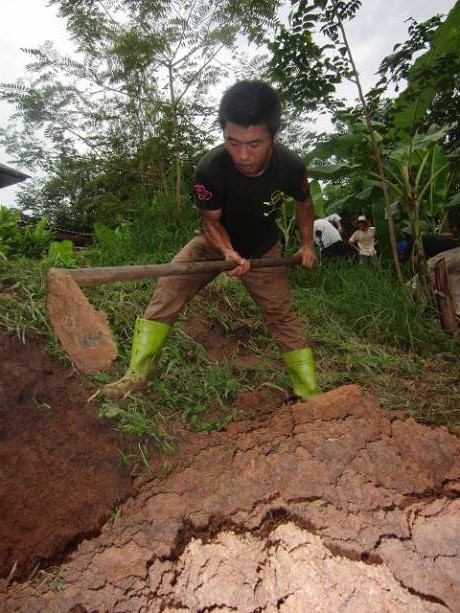 初めての家畜への餌やり、朝食の焼きおにぎりのうまさ、洗剤作りで童心に返り、オリエンテーションでは、インターンの成り立ちを知り、昼休みはタイ語の先生への自己紹介文作成に時間を費やし、お昼の農作業はバナナの植樹で汗だく、泥だらけになった。夕食は心の底から「アロイマーク(タイ語:とても美味しい)」だった。