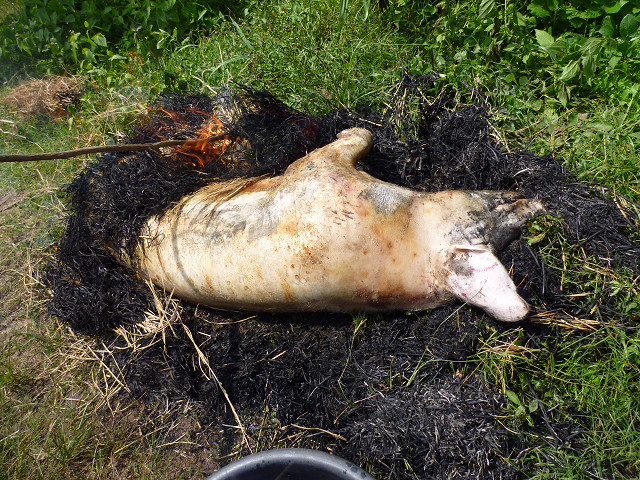 他には飼っていた豚も捌きました。こちらは直接最期の瞬間に立ち会った訳ではありませんが、私が朝の餌を与えてから数時間後には叫び声に近い鳴き声が聞こえ、その数時間後には家族みんなで解体し始めていました。