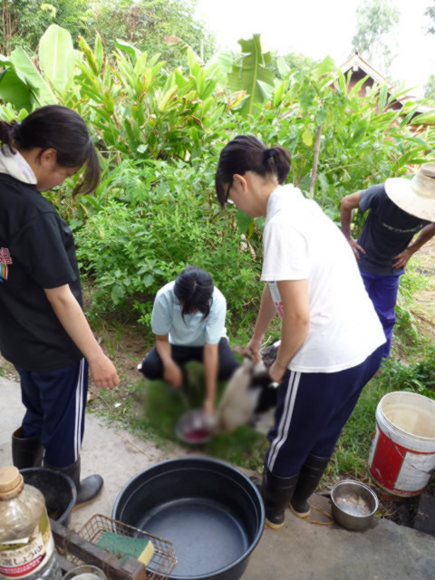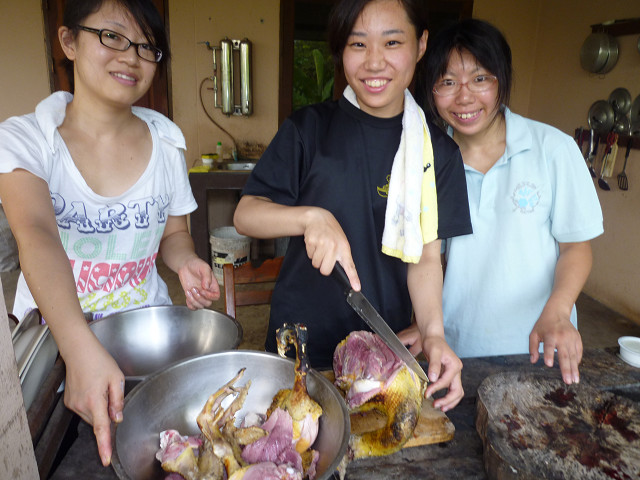 農園に到着した初日には、早速飼っているアヒルを捌きました。手順は以下の通りです。