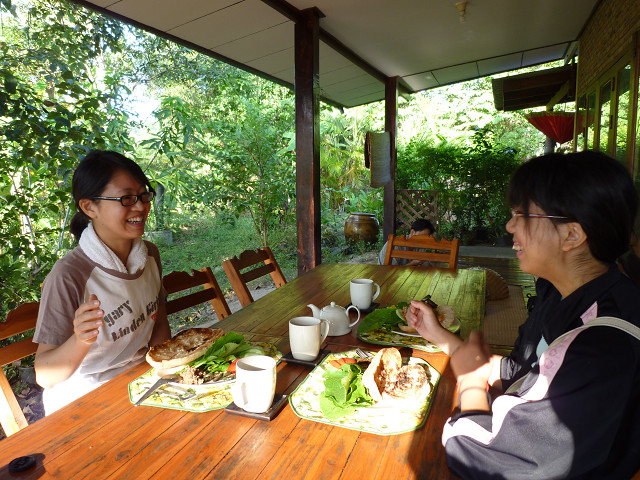 カオデーン農園ではご飯は当番制で、火を起こすところから始まり、農作業もタイ語もほぼ初めてのことばかりでしたが、どれも新鮮で楽しく、農園から眺める朝日や、緑を眺めながら食べるご飯はとても贅沢で幸せな気分になりました。