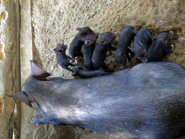 そして最近発覚した新事実としては、なんと毎日私がエサを与えていた雌豚のお腹には子どもがいて、前日までは何の予兆もなかったのですが、翌朝には8匹の子豚がそこにいました。