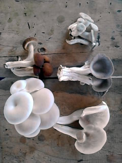 そしていよいよキノコの収穫。今の時期は朝晩冷え込む為収量は少ないのですが、5種のキノコの収穫をしました。