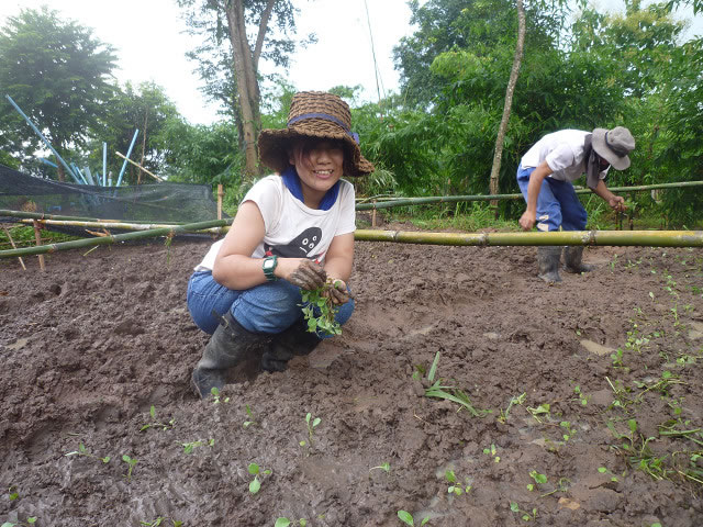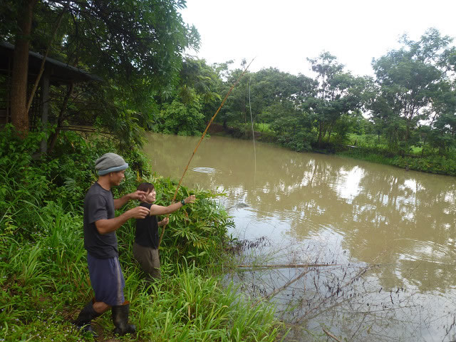 お寺に徳を積みに行ったり、森本さん(タイ現地調整員)のタイ料理を楽しみに魚を釣ったり、アリに噛まれたり、カエルをさばいたり、東北タイの生活を少しずつ体験させていただいています。明日からはカオデーン農園を離れ、ガラシン県で自然農業に関するNGO活動をしている方の元へホームステイに行きます。