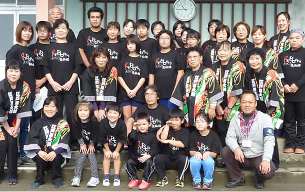 児童の発表終了後もまだまだイベントは続いた。まずは「小々汐打囃子保存会」の演技である。冒頭に代表者から「津波の直後は太鼓の事は考えられなかった。皆さんの支援に背中を押されるような気持ちになり会の活動が再開できた」と語られた。心なしか目が潤んでいるようにも見受けられた。太鼓を叩き始めた保存会の人々の姿は、悲しみを一つ乗り越え、今を存分に享受しているかに映っていた。