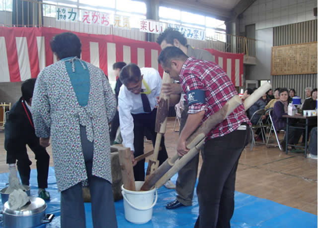 「さざなみ祭り」はゲームや踊りなどの全体イベントや教室で行われる児童会イベントへと進み、正午からは収穫祭・会食会が催された。言うまでも無くこの「祭り」の主役は児童・保護者・招待者をはじめとする浦島小学校の関係者である。JVCは学生ボランティアを含む10名体制で裏方に徹することとし、イベントの進行具合に合わせて収穫祭・会食会用料理の調理・配膳の準備などに勤しんだ。