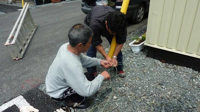 住民の方々は、今までの生活、農業・漁業を通じて様々な経験を積み重ねてきた方ばかり。その経験に基づいた意見や提案は納得できるものが多く、こちらが勉強になることも数多くありました。たとえば「食べて美味しい植物のほうがいいわ!」といったお母さんたちの意見からは、日除けができればよいという事ではない、という当たり前といえば当たり前のこと、ついつい忘れがちな住民の方の細かい気持ちなどを改めて感じることが出来ました。今回は暑さ対策として効果の高いユウガオを利用することにしましたが、住民の方の意見を今後の活動に取り入れていきたいと考えています。ほかにも、元農協の職員さんからは植物の育て方、漁師さんからは紐の結び方など、たくさんの事を教えていただきました。ありがとうございました!