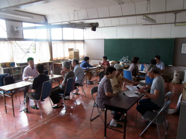 7月7日、防災集団移転のアドバイザー派遣を実施しました。今回は、昨年度閉校した旧浦島小学校を会場として、大浦(おおうら)・小々汐(こごしお)・梶ヶ浦(かじがうら)の三地区合同で住宅相談会を開催し、約50名の住民の参加を得ました。