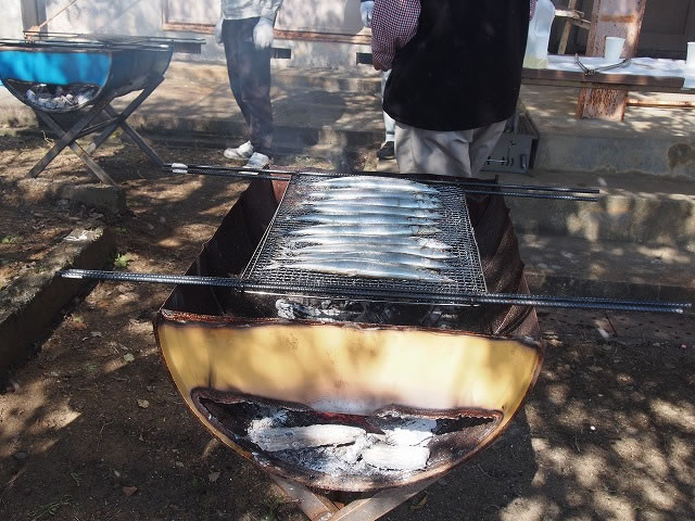 「なぜ穴山町で開催するの?」と思われる方もいらっしゃるかと思いますが、実は、穴山町でカフェを営むJVCの前事務局長が「気仙沼から遠く離れた地で暮らす方々にも気仙沼について少しでも知ってもらい、気仙沼を応援したい」と、穴山町の住民の協力を得て実現したのが、この穴山町のサンマ祭りです。