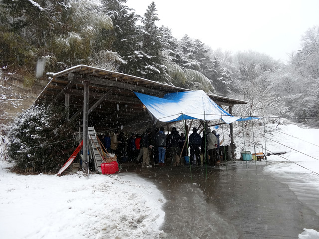 10時半ころから参加者も加わって臼と杵で餅つきが始まりました。お昼頃にはついた餅や手作りのご馳走を囲んでの交流会は大変にぎやかでした。総勢50名近くの参加者も収まる広間はこれまでずっと冠婚葬祭も含めいろいろな地元の催しがもたれた部屋だったのでしょう。