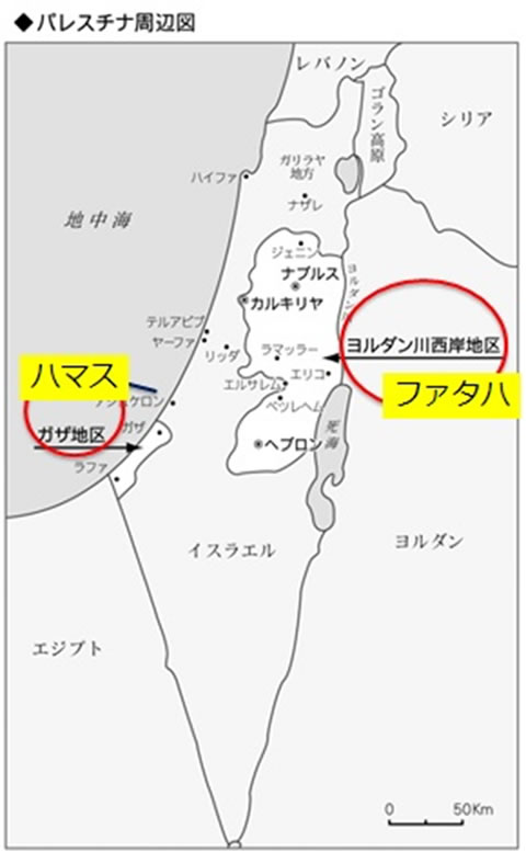 公式上の自治政府は2006年から「ハマス」という政党です。しかしながらここもややこしい点なのですが、「ハマス」の前に政権をとっていた「ファタハ(故・アラファト議長が有名ですね)」からの政権移管がうまくいっておらず両者が対立しており、現在は「ハマス」が「ガザ地区」、「ファタハ」が「ヨルダン川西岸地区」を実効支配するようなかたちになっています。ただでさえイスラエルとの関係が大変なのに、パレスチナ自治区内で、さらに「仲間割れ」しているとは。本当に複雑な事情を抱えた地域です。