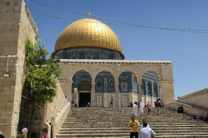 ユダヤ教の聖地である「嘆きの壁」では、信者の方々が熱心に壁に向かって祈りを捧げていました(写真は遠慮しました)。イスラム教の聖地である「岩のドーム」のある「神殿の丘」は、一部日時のみ観光客にも開放されているので、イスラム教徒でなくともドームを近くで見ることができます(お祈りをしている建物の中まで入ることはできません)。