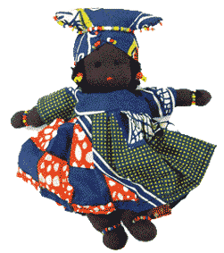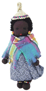 | コサ 南アフリカの南方、トランスカイとシスカイ地方に住んでいます。家畜と農耕を糧とする遊牧民です。頭にバンダナを巻き、シンプルな衣装をまとっています。 |