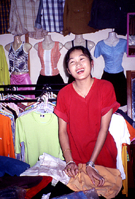 女性の服装も時代の移り変わりにより都市部で変わってきました。未婚の女性がノースリーブを着るようになり、シンというラオス伝統の巻スカートもジーパンにとって変わりました。