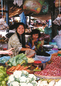 ビエンチャンでの市場の様子。 市場では旬な作物がたくさんあります。 市場では女性が多く働いています。 男はどこにいったかと思うくらいですが、 女性に任せているらしく、 その間、遊びに行っているとか・・・